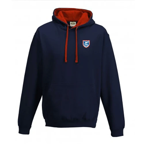 Two toned unisex hoody in Navy with Red contrast with 80% ringspun cotton/20% polyester.